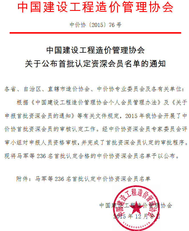 公司总经理连国柱同志荣获中价协首批认定资深会员荣誉