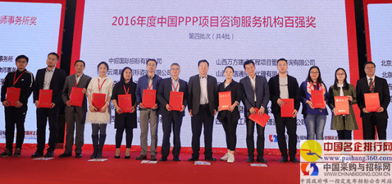 (颁奖嘉宾为山西万方参会代表颁发“2016年度中国ppp项目咨询服务机构百强”荣誉)